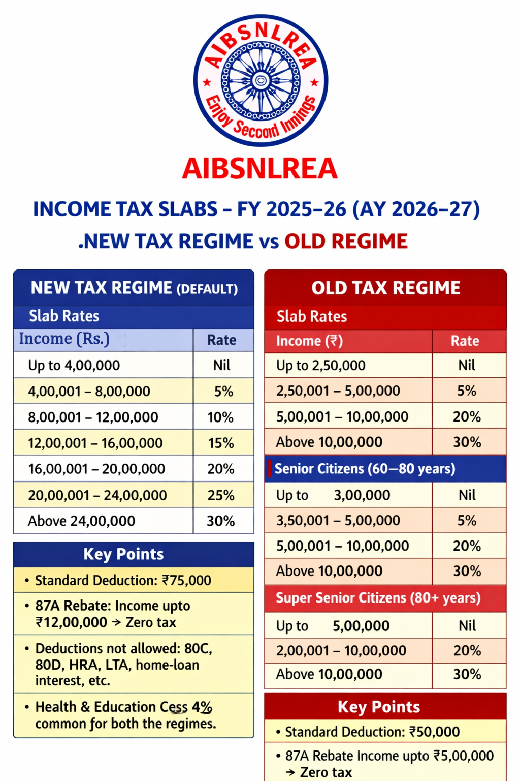April 2026 issue of AIBSNLREA E-journal with the Editorial "THE QUIET STRENGTH OF TRUTH, TRUST AND RESILIENCE" has been uploaded. All the issues of the E-Journal can be downloaded from the drop down menu "EJournal Archives" at the top of the website. The "View" links in the e-journal lead to the respective letters/orders. View the E-journal April 202604.04.2026: